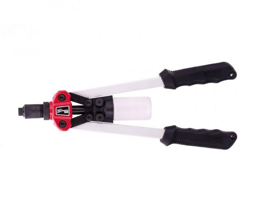 Двуручный заклепочник, 330 мм, заклепки 3,2-4,0-4,8 мм, PRO MATRIX 40549 предназначен для скрепления металлических листов с помощью вытяжных заклепок. В комплект входят три насадки для заклепок 3.2, 4.0 и 4.8 мм.