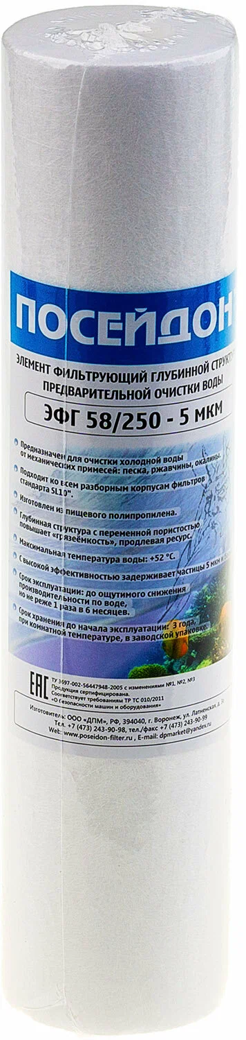 - Размер фильтруемых частиц, мкм: 5